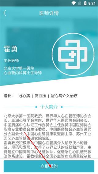 5、进入医师详情页,点击立即预约完成面诊预约。