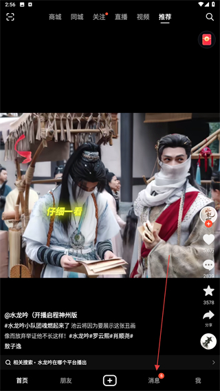 1、启动火山小视频的应用,点击导航栏中消息的按钮。