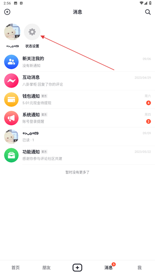 2、进入消息的界面内,点击上方状态设置的按钮。