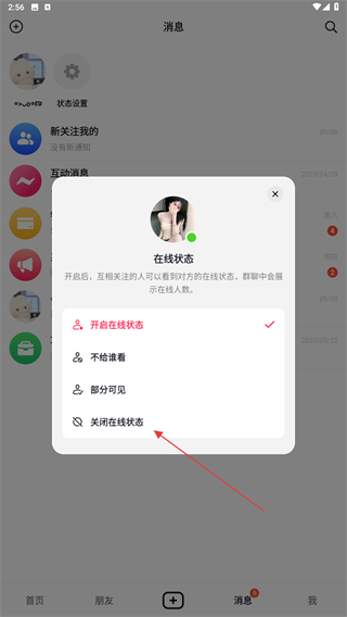 3、在弹出的在线状态界面内,点击关闭在线状态即可。