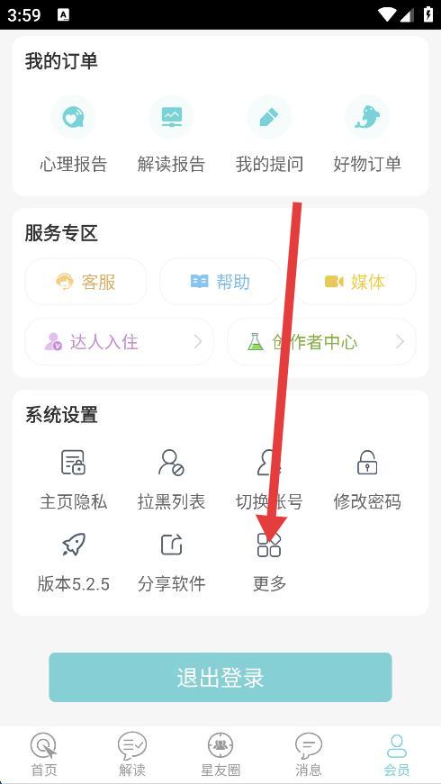 2、在会员页面的系统设置板块中,找到并点击更多选项。