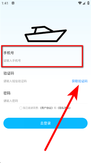 4、输入短信验证码,设置密码,勾选协议后,点击去登录,完成注册。