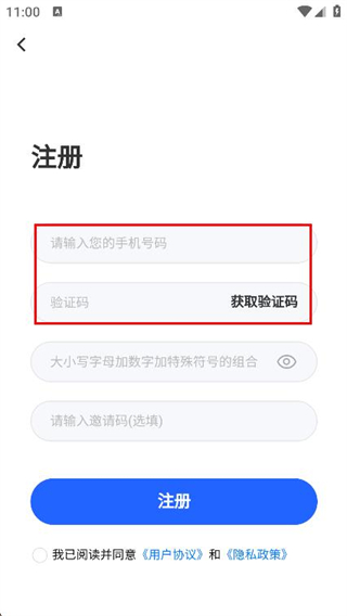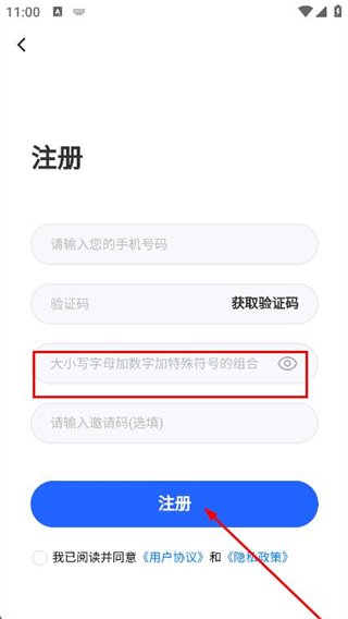 4、设置密码,点击注册按钮完成注册,即可成功登录。