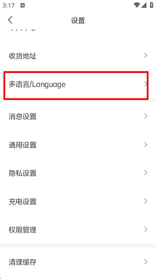 3、进入设置页面后,点击多语言/Language选项。