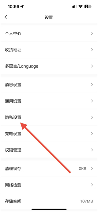 2、在设置页面,点击隐私设置选项,进入隐私设置页面。