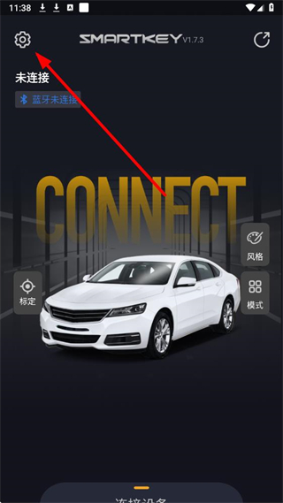 1、在智能控车应用界面,点击左上角的设置图标,进入设置界面。