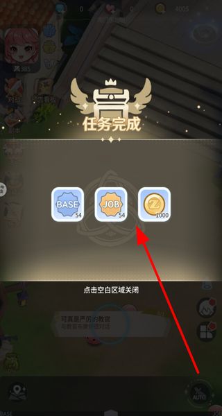 4、任务完成后获取对应的奖励,点击空白区域关闭奖励界面,继续开展后续的冒险内容。