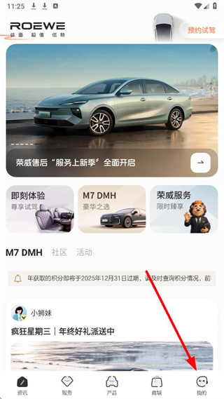 1、打开上汽荣威APP,进入主界面后,点击底部导航栏最右侧我的选项。