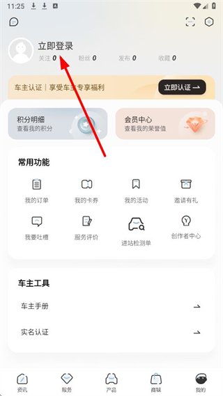 2、在我的页面中,下滑找到车主工具板块,点击其中的车主手册。