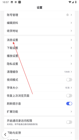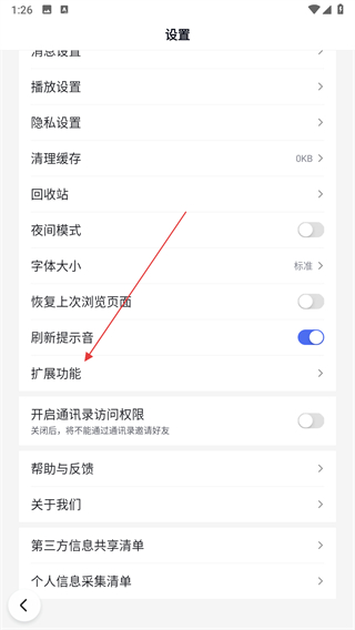 3、在设置页面里找到扩展功能选项,点击该选项跳转至扩展功能的配置页面。