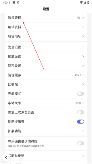 2、在个人中心页面中,点击设置图标,进入设置页面后选择账号管理。