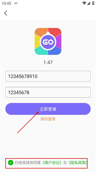 4、勾选同意用户协议与隐私政策的选项,点击立即登录按钮,完成账号登录操作。
