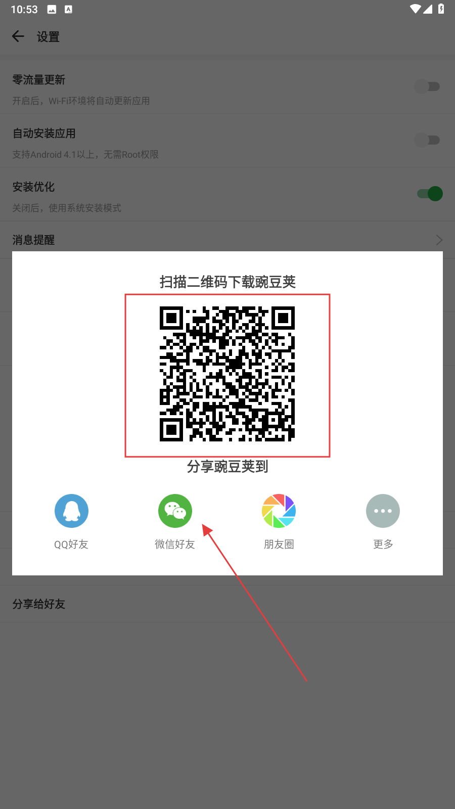 3、进入到设置的页面内,点击下方分享给好友的按钮。