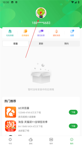 1、打开豌豆荚个人中心页面,点击上方账号头像区域,进入账号管理页面。