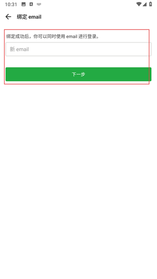 3、在绑定email界面的输入框中填写要绑定的邮箱地址,填写后点击下一步。