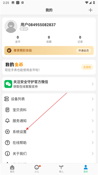 2、在个人中心页面找到系统设置选项,点击进入设置页面。