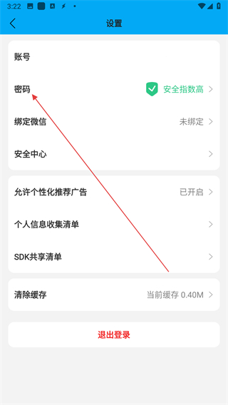3、在设置页面找到密码选项,点击进入修改密码页面。