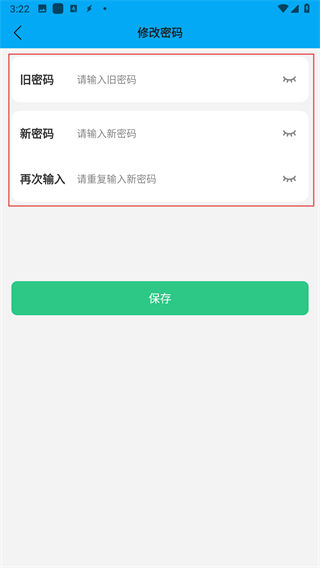 4、输入旧密码、新密码并再次输入新密码后,点击保存即可。