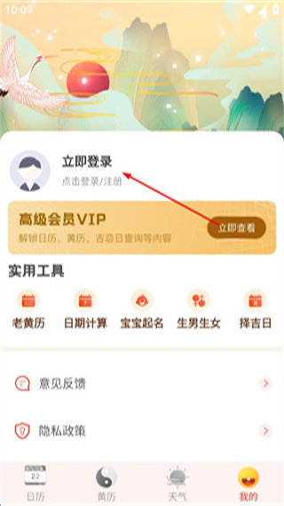 2、在个人中心页面,找到立即登录选项并点击,进入登录相关的操作界面。