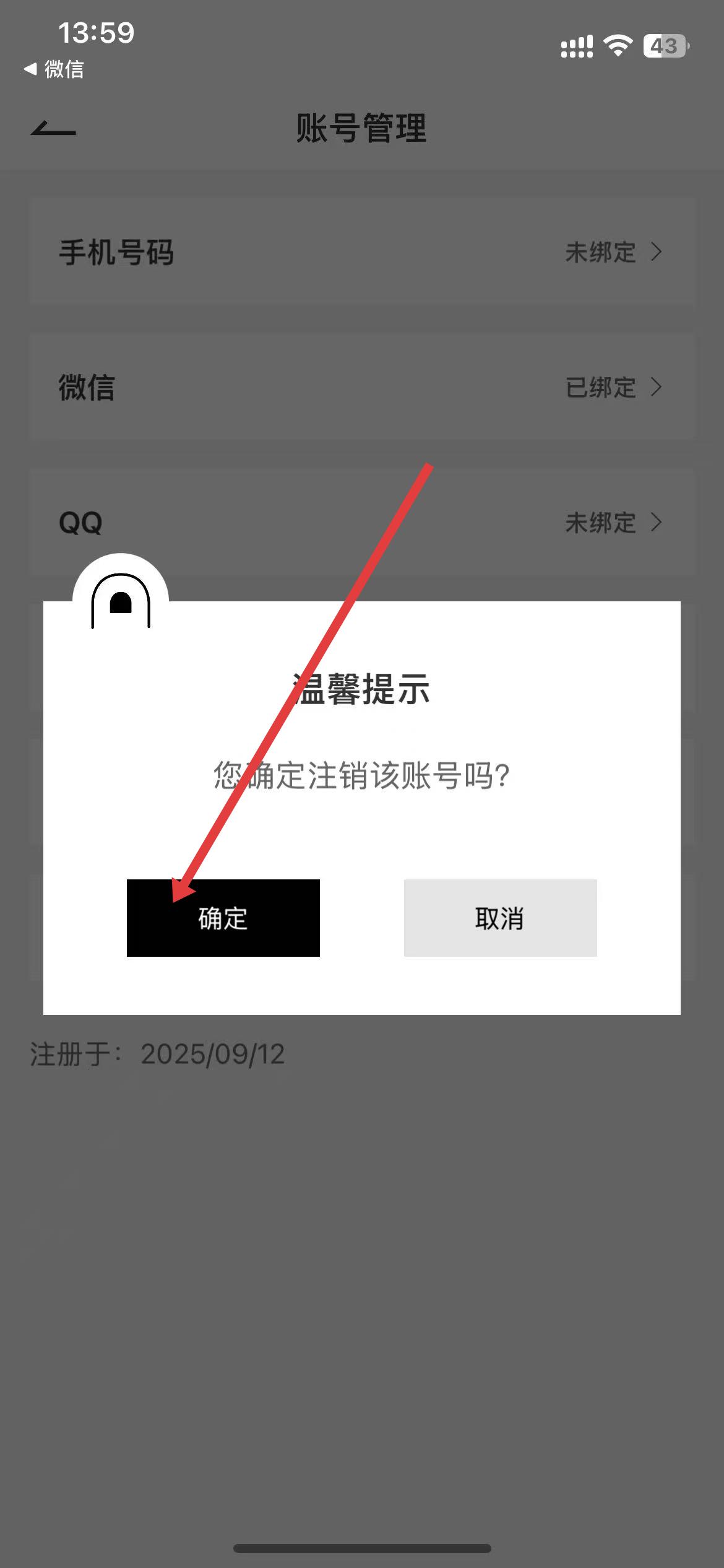 4、在弹出的温馨提示框中点击确定,即可完成账号注销操作。