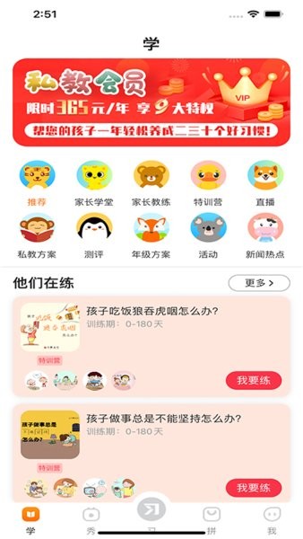 解决用户实际问题的1000+训练计划,通过训练和视频学习辅导用户养成习惯!