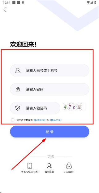 3、在登录页面填写手机号、密码和验证码,勾选协议后,点击登录完成账号登录操作。