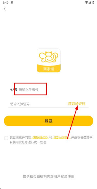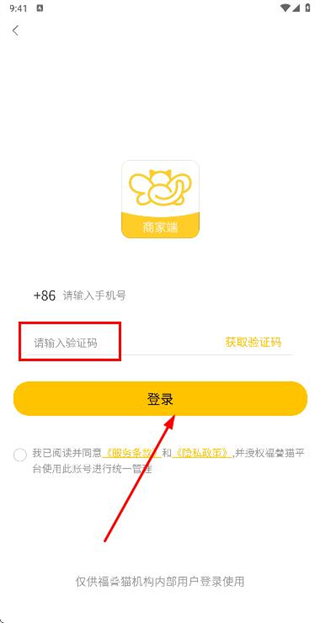 2、在验证码登录页面填写手机号,勾选协议后,点击获取验证码。