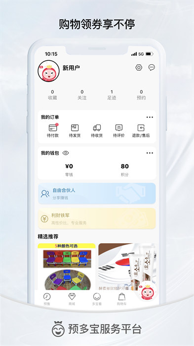 预多宝是一款可以一分钱购买商品的手机购物app,软件里每天都有各种各样的购物活动,让用户能够低价购买自己心仪的商品。软件里的商品囊括了生活中的几乎所有方面,衣食住行全都有,还有线上预约体验店的功能。软件的商品都是为预购,帮助企业减少了大量的人工成本和储存成本。