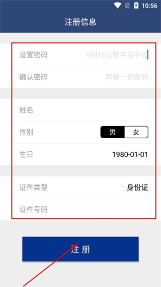 5、填写密码、姓名、性别等信息后,点击注册完成注册。