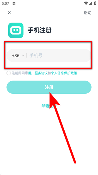 3、在手机注册页面,输入手机号,勾选协议,点击注册。