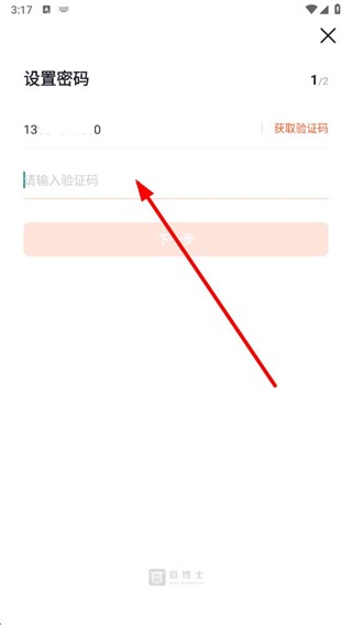 4、在设置密码页面点击获取验证码,输入收到的验证码后,按照提示设置密码即可。