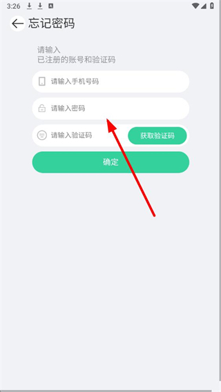 4、在忘记密码页面,输入注册的手机号码、新密码及验证码,点击确定即可重置密码并登录。