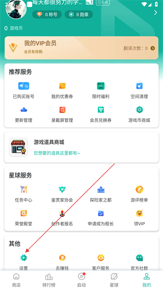 2、在个人页面点击游戏道具商城选项,进入游戏商城页面。