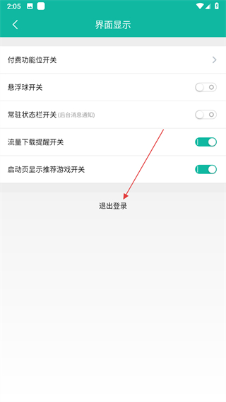 4、在界面显示页面,点击退出登录选项。