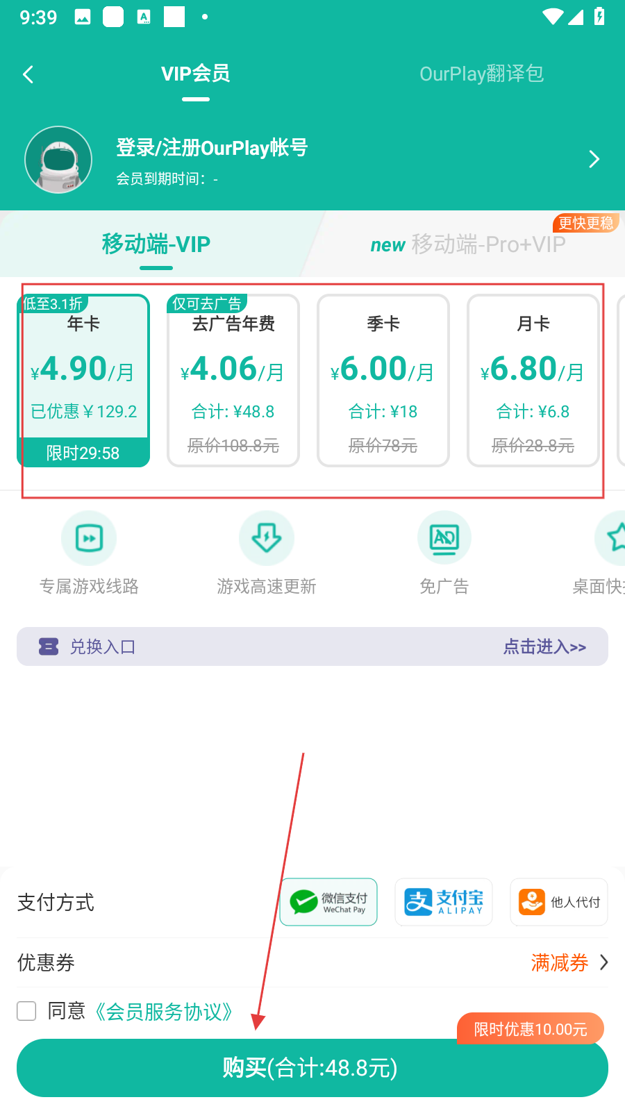 注册OurPlay账号,可以用于购买VIP服务(后面会讲什么是VIP服务)。