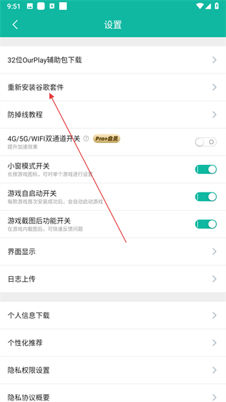 用户无需做任何操作,OurPlay自动匹配用户手机型号安装对应的GMS套件,并同步自动更新。