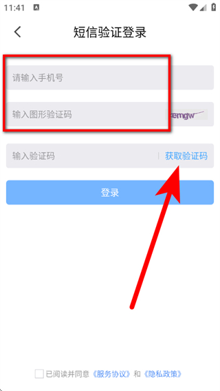 4、在输入框中,输入验证码,勾选协议后,点击登录,完成登录。
