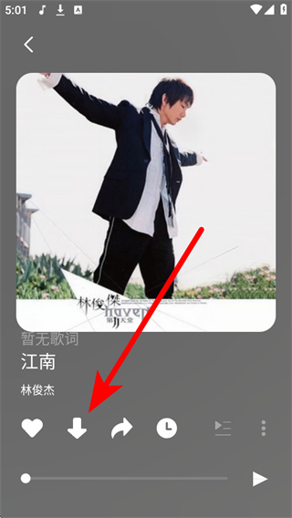 4、在播放页面中找到下载按钮,点击该按钮,即可将这首歌曲下载到本地。