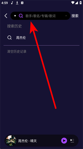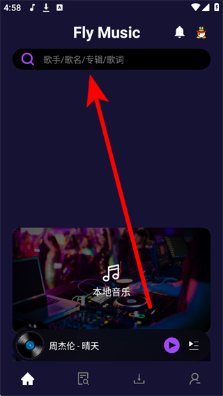 1、打开FlyMusic音乐,点击首页顶部的搜索框。