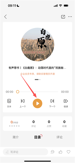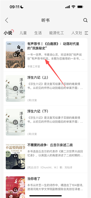 2、在听书页面,点击目标有声内容,进入播放页面。