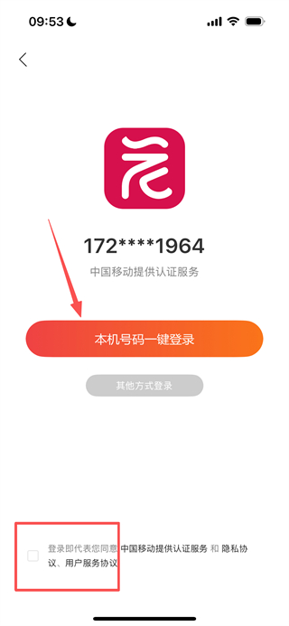 3、在登录页面,勾选协议后点击本机号码一键登录,完成账号登录操作。