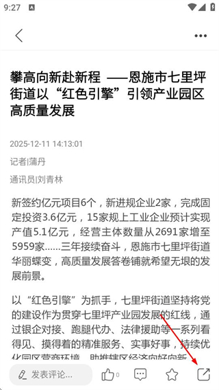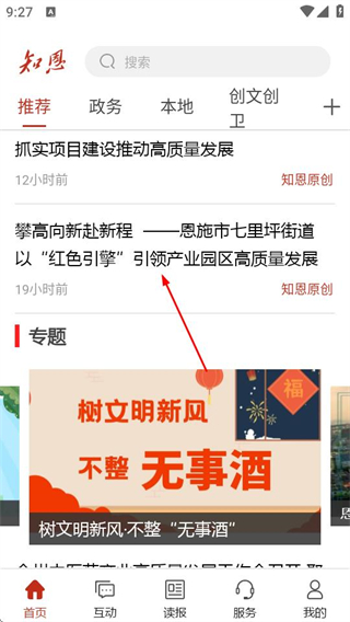 1、在恩施日报知恩首页,点击目标文章,进入文章详情页。