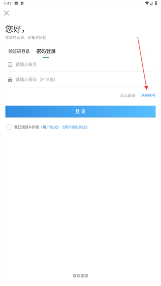 3、在密码登录的界面内,点击右侧注册账号的按钮。