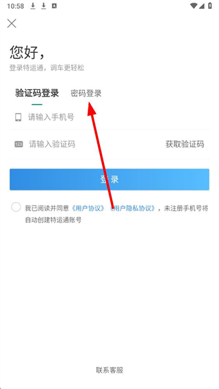 2、进入验证码登录的页面内,点击密码登录的按钮。