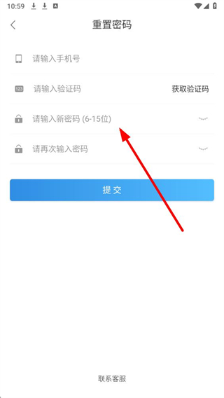 3、进入重置密码页面后,输入手机号,获取验证码,再设置新密码,最后点击提交即可完成密码重置。