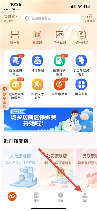 1、打开皖事通app应用,在首页点击底部我的选项,进入个人页面。