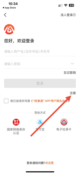 3、在登录界面中,点击注册按钮,进入个人注册页面。