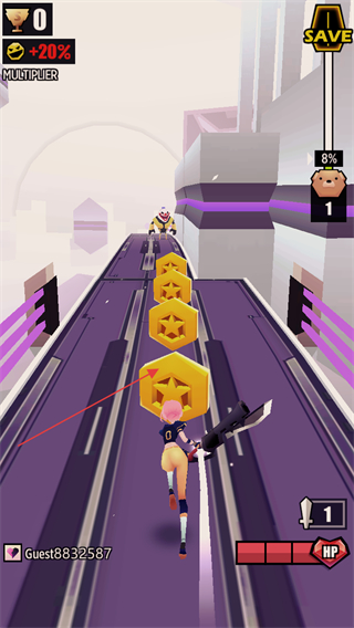 2、跑酷+战斗双核心玩法革新,赛道上不仅要躲避障碍,更要操控少女发起攻击,跳跃踢击、翻滚突袭等动作衔接流畅,打击感与跑酷爽感完美融合。