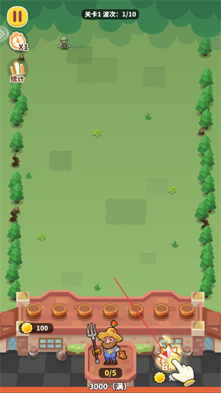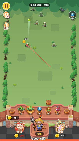 1、处于关卡1场景时,点击界面中的召唤按钮,消耗对应资源部署植物,以抵御即将出现的僵尸。