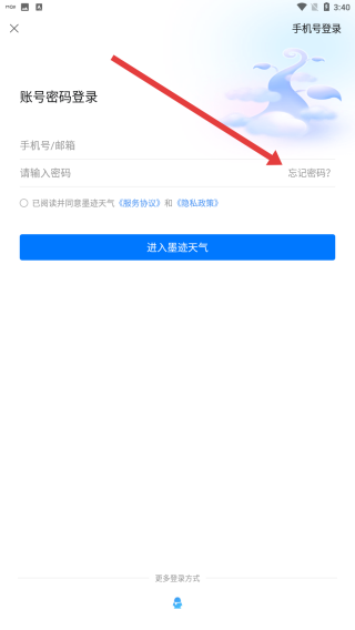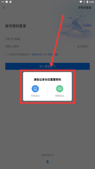 2、在使用账号密码登录页面中,如果忘记了密码,可以点击下方的忘记密码按钮。